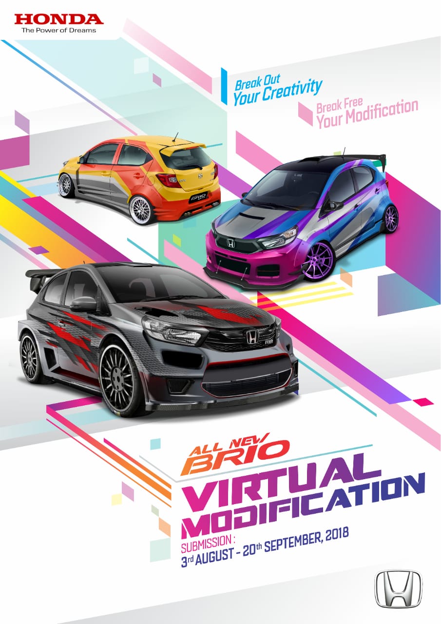 Honda Permata - PT Honda Prospect Motor (HPM) menggelar kontes “Honda Brio Virtual Modification (V-Mod)” sebagai wadah untuk menampilkan kreativitas para peminat modifikasi digital di Indonesia. Kontes ini akan berlangsung selama periode 3 Agustus – 4 Oktober 2018 dan terbuka untuk masyarakat umum.